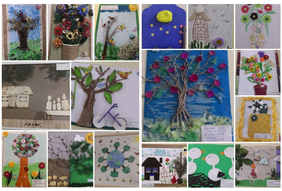 - Secţiunea I: ECO-ARTĂ – Concurs de lucrări realizate din materiale reciclate (tablouri/colaje/felicitări/jucării/mascote) – adresat elevilor din clasele P-IV (participare indirectă)